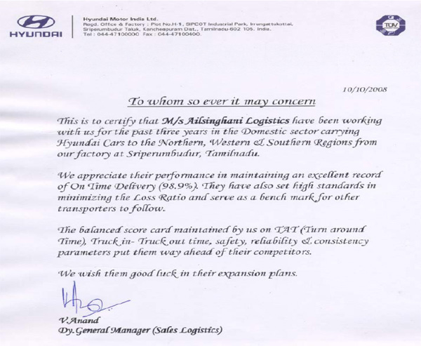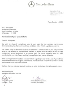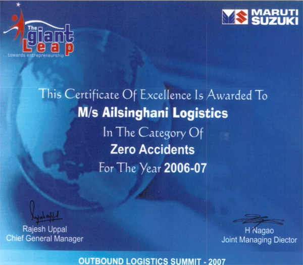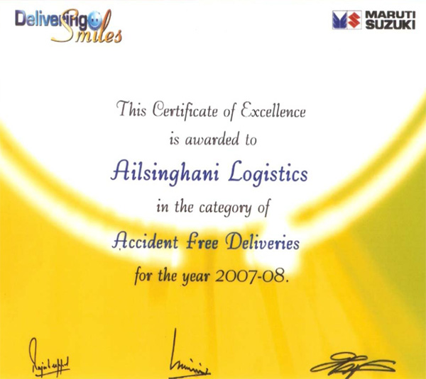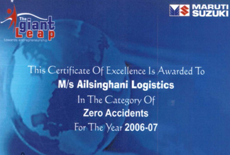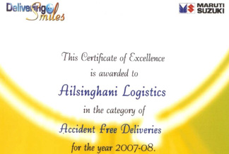 Awards for “Accident free deliveries” & “Best Driver Retention Award” from Maruti - 2007