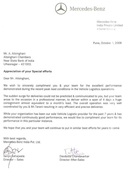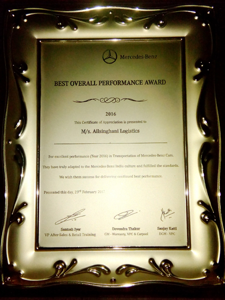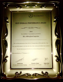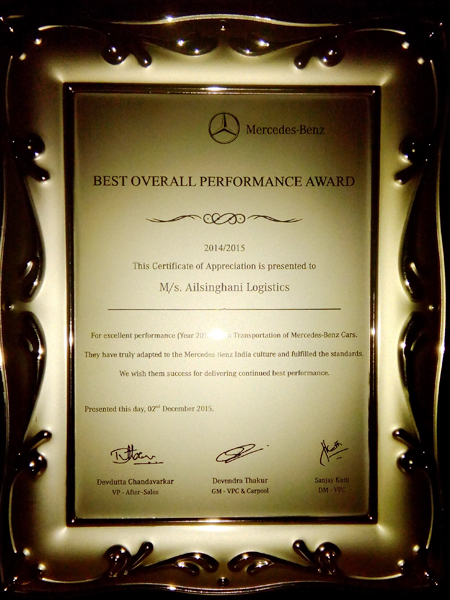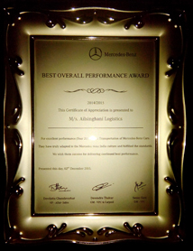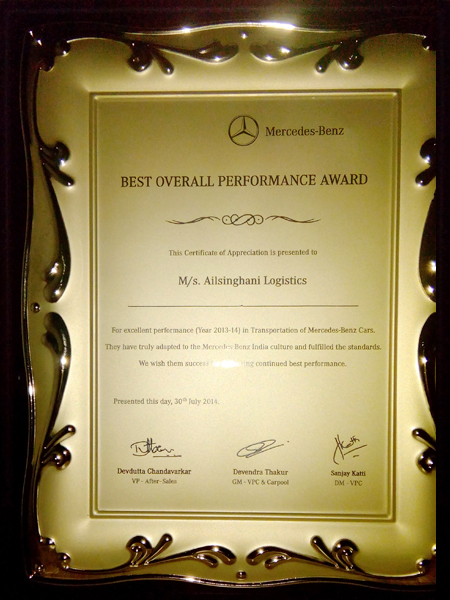 Best Overall Performance Award from Mercedes 2013 - 14