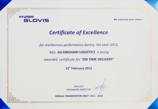 “On Time Delivery” Award from Maruti